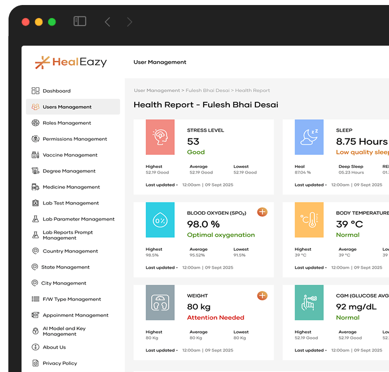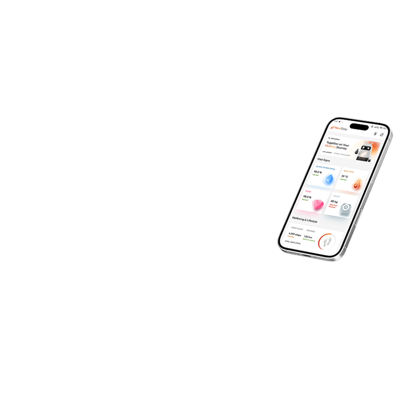 Key vitals are tracked through paired devices and synced automatically into the care ecosystem.